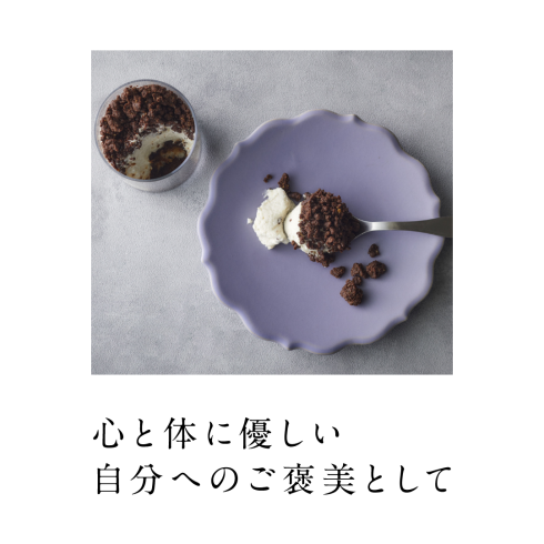 おからと米粉でざっくざく食感に仕上げたココアクッキーとの相性も抜群です。後味はさっぱり爽やか。